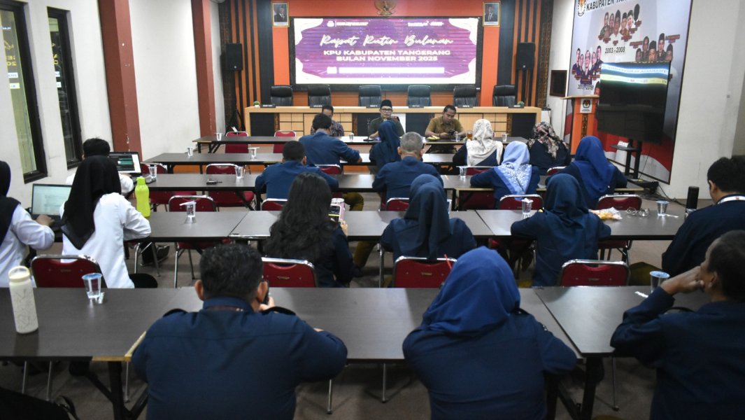 Tangerang – kab-tangerang.kpu.go.id - Komisi Pemilihan Umum (KPU) Kabupaten Tangerang menggelar rapat internal bersama jajaran sekretariat pada Selasa, 4 November 2025, bertempat di Aula Kantor KPU Kabupaten Tangerang. Kegiatan ini dipimpin langsung oleh Ketua KPU Kabupaten Tangerang, Muhamad Umar, dan diikuti oleh para komisioner, sekretaris, serta seluruh jajaran subbagian di lingkungan sekretariat.