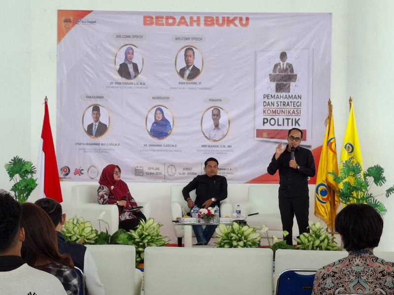 Selain itu, bedah buku ini turut menghadirkan Syurya Muhammad Nur sebagai narasumber. Dengan latar belakang sebagai akademisi, Syurya memberikan perspektif teoritis dan praktis terkait strategi komunikasi politik, serta relevansinya dalam konteks demokrasi modern. Diskusi berlangsung interaktif dengan berbagai pertanyaan dan tanggapan dari peserta, mencerminkan antusiasme mahasiswa terhadap tema yang dibahas.