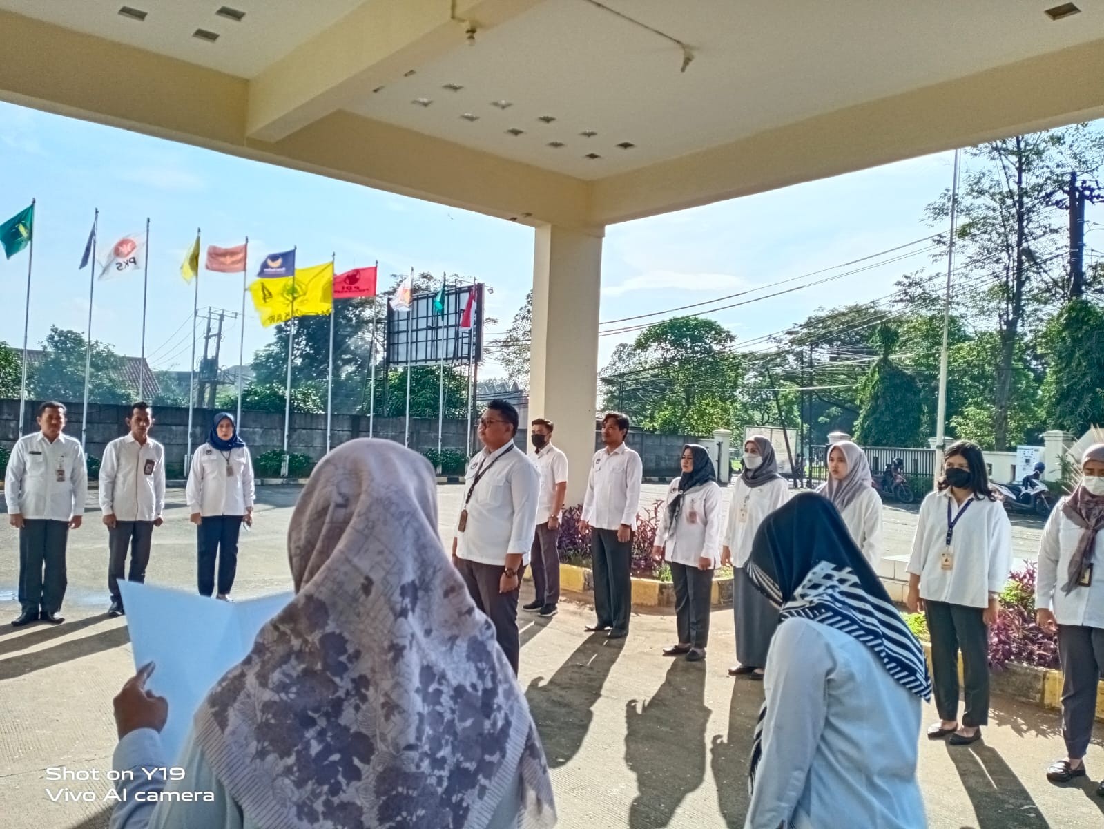 Semua pegawai mengikuti rangkaian kegiatan apel pagi ini dengan khidmat. (Humas KPU Kabupaten Tangerang)