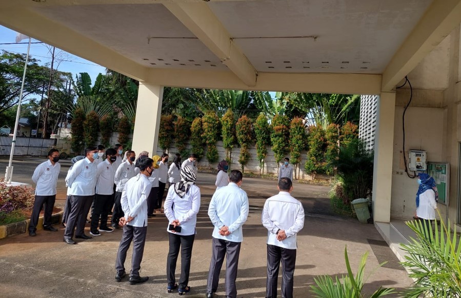 Tigaraksa, (www.kab-tangerang.kpu.go.id) - Apel pagi setiap hari Senin memang rutin dilaksanakan di lingkungan Komisi Pemilihan Umum Kabupaten Tangerang. Seperti halnya pagi ini, Senin 21 Juni 2021 KPU Kabupaten Tangerang mengadakan apel pagi, sama seperti biasanya bertempat di halaman kantor KPU, apel diikuti oleh seluruh staff sekretariat, dimulai pada pukul 07.30 WIB. Sebagai Pembina apel kali ini adalah Ita Nurhayati selaku Komisioner KPU Kabupaten Tangerang.