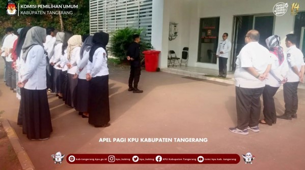 Tigaraksa, (www.kab-tangerang.kpu.go.id) – KPU Kabupaten Tangerang melaksanakan apel pagi di halaman kantor KPU Kabupaten Tangerang diikuti pegawai sekretariat KPU Kabupaten Tangerang. Sebagai pembina apel hari ini Kasubag Teknis Penyelenggara dan Parmas KPU Kabupaten Tangerang, Didi Munadi. Senin, (3/7/2023).