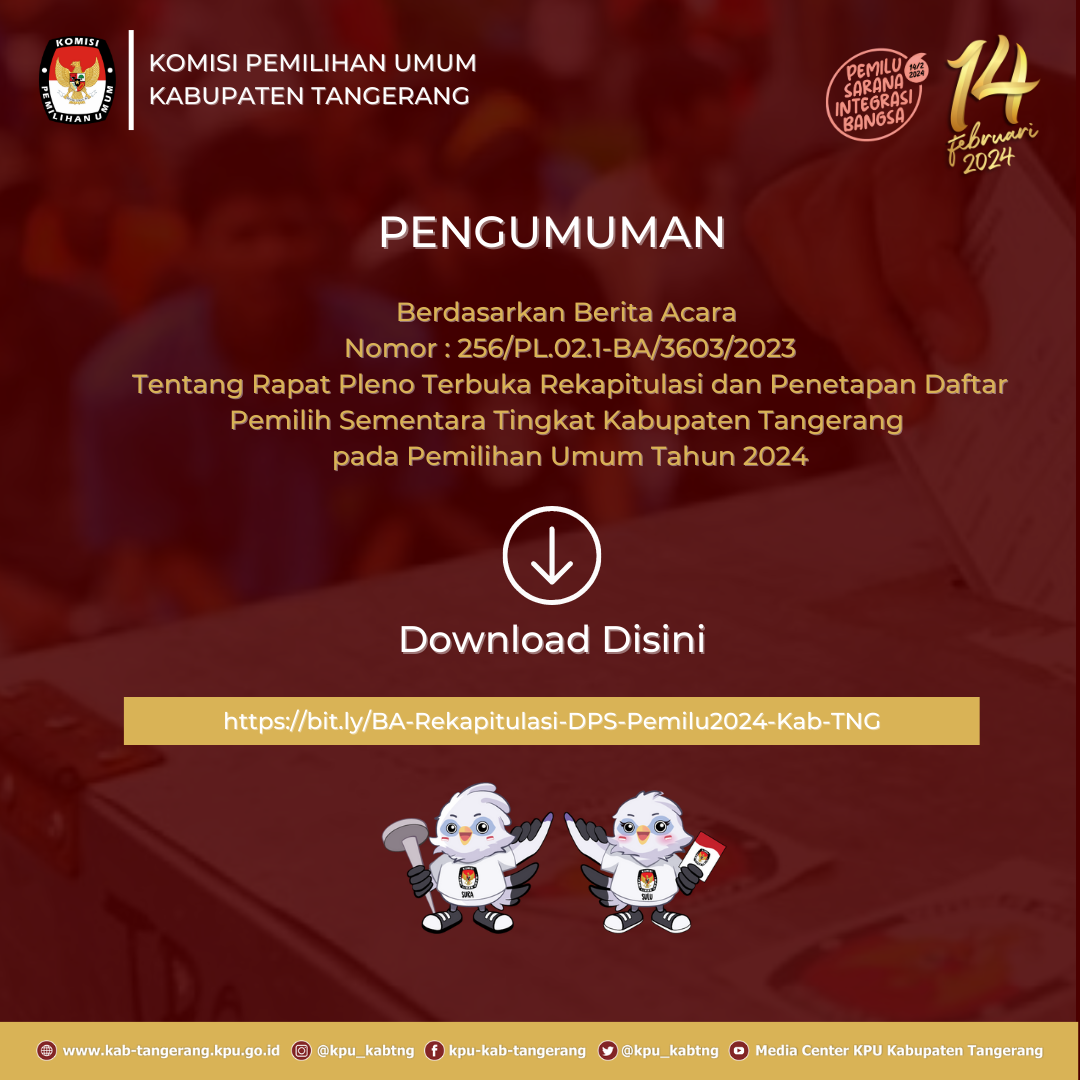 Berdasarkan Berita Acara Nomor : 256/PL.02.1-BA/3603/2023 Tentang Rapat Pleno Terbuka Rekapitulasi dan Penetapan Daftar Pemilih Sementara Tingkat Kabupaten Tangerang