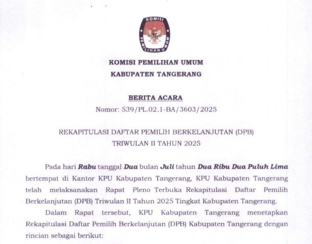 Berita Acara Rekapitulasi Daftar Pemilih Berkelanjutan (DPB) Triwulan II Tahun 2025