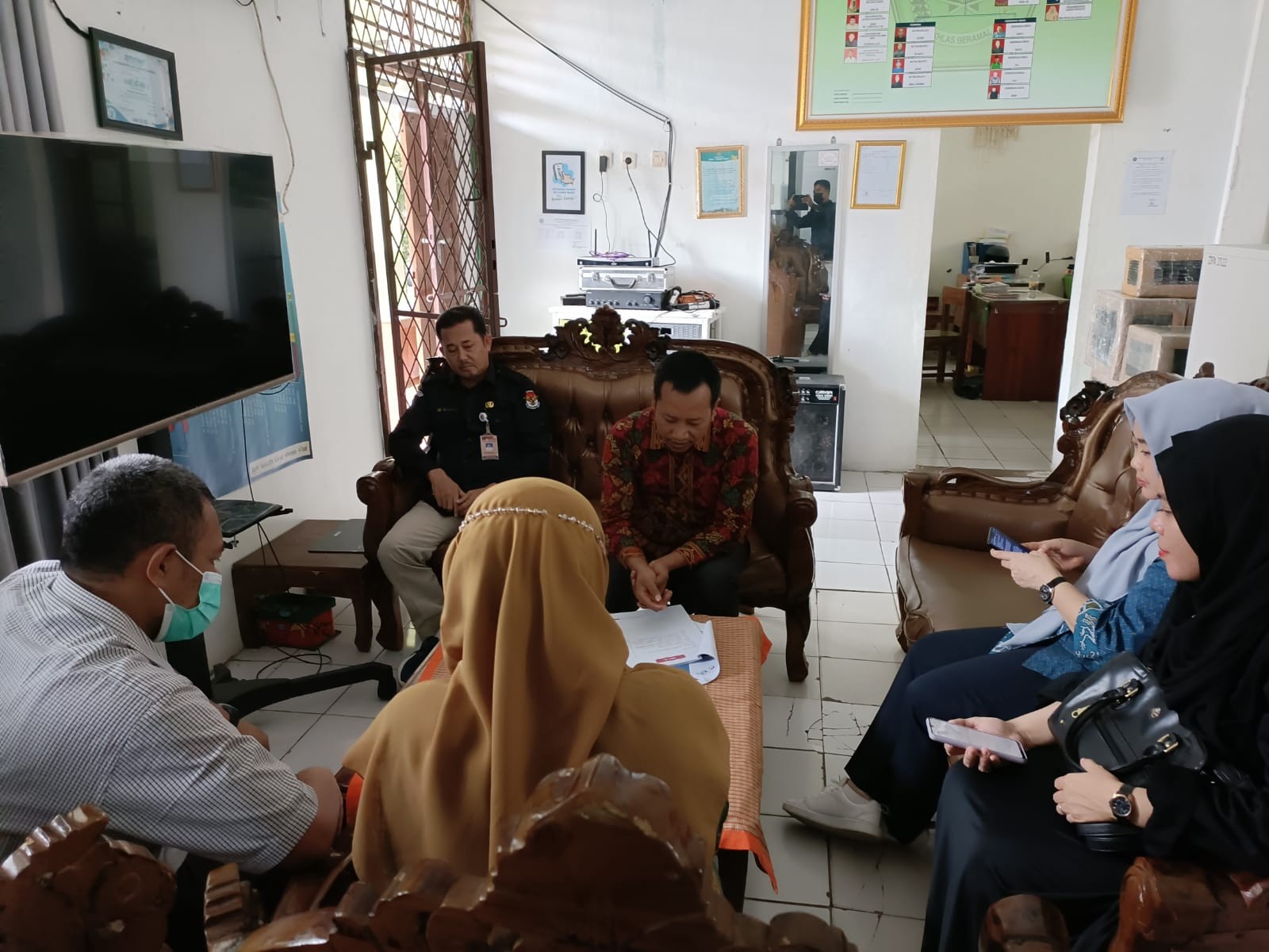 Tigaraksa, (www.kab-tangerang.kpu.go.id) – Anggota KPU Kabupaten Tangerang, Imron Mahrus menyampaikan poin-poin materi Gerakan KPU Mengajar ke bagian Kurikulum dan Kesiswaan MAN 1 Tangerang. Rabu, (13/7/2022)