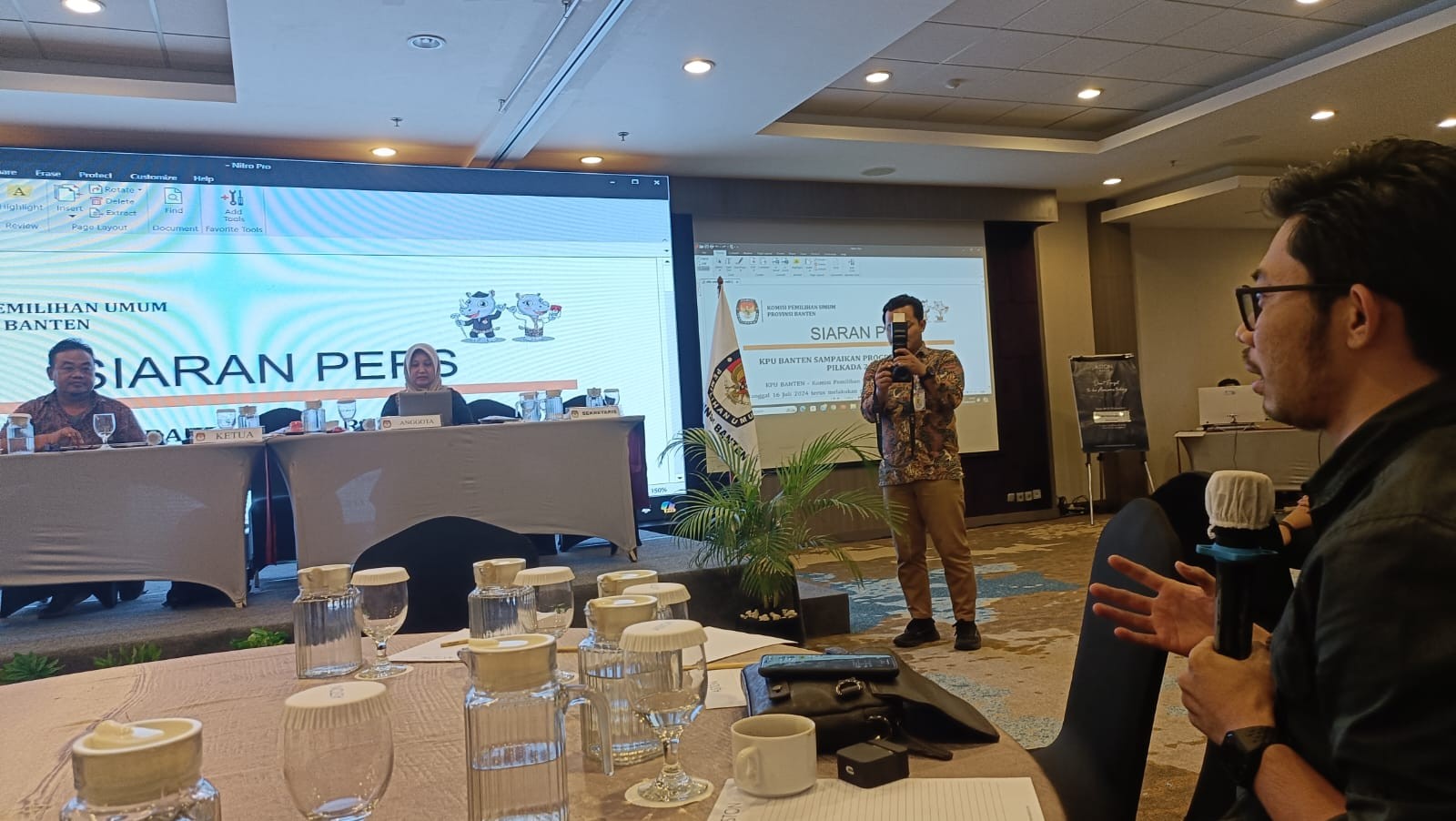 Tampak hadir Ketua dan Anggota KPU Provinsi Banten M Ihsan, Aas Satibiz, Akhmad Subagja, M. Ali Zaenal Abidin, M. Agus Muslim, Ahmad Suja'i, serta Sekretaris KPU Provinsi Banten Ferry Syahminan.