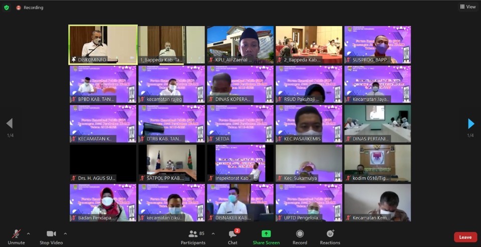 Tigaraksa - (www.kab-tangerang.kpu.go.id) - Pada Hari Jumat tanggal 9 April 2021 KPU Kabupaten Tangerang menghadiri Undangan Forum Konsultasi Publik (FKP) Perubahan RPJMD 2019-2023 Secara Daring Melalui Zoom Meeting. Agenda tersebut dihadiri oleh Bappeda Kabupaten Tangerang, BPBD Kabupaten Tangerang, Dinas Pertanian Kabupaten Tangerang, Satpol PP Kabupaten Tangerang, Inspektorat Kabupaten Tangerang, Kodim 0510 Kabupaten Tangerang, Disnaker Kabupaten Tangerang, DTRB Kabupaten Tangerang, seluruh Kecamatan di Kabupaten Tangerang Dan Dinas terkait lainnya.
