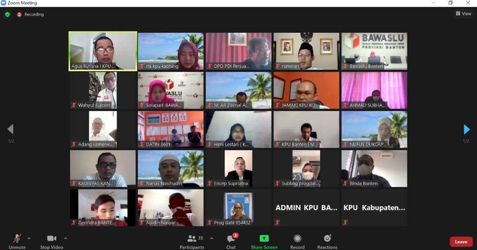 Hadiri Undangan Zoom Meeting dari KPU Provinsi Banten Tentang Rapat Koordinasi Rekapitulasi Pemutakhiran Data Pemilih Berkelanjutan (PDPB) Semester I Tahun 2021