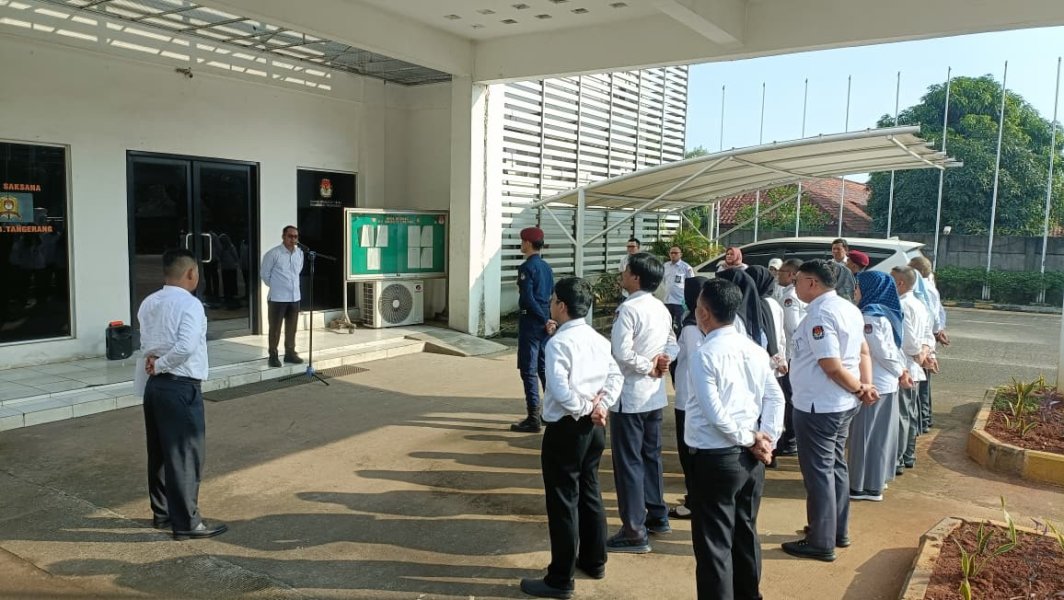 Tigaraksa, (www.kab-tangerang.kpu.go.id) – Seluruh jajaran Komisi Pemilihan Umum (KPU) Kabupaten Tangerang beserta Sekretariat mengikuti Apel Pagi bertempat di halaman Kantor KPU Kab. Tangerang pada Senin, (04/08/2025).
