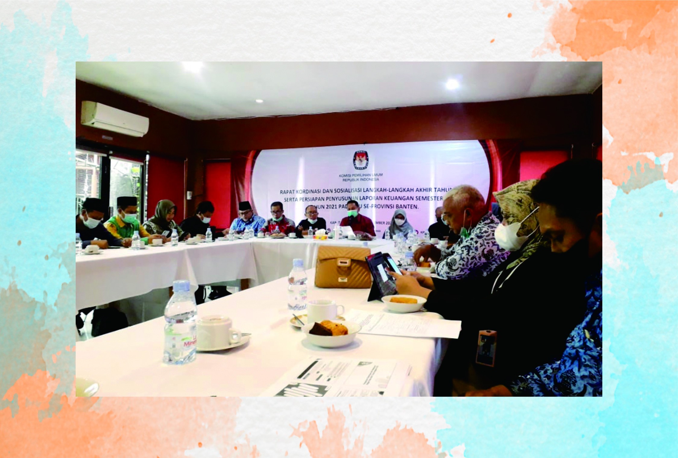 Cikupa, (kab-tangerang.kpu.go.id) - Komisi Pemilihan Umum Kabupaten Tangerang menghadiri kegiatan yang diselenggarakan oleh Komisi Pemilihan Umum Provinsi Banten tentang Rapat Koordinasi dan Sosialisasi Langkah-langkah Akhir Tahun Serta Persiapan Penyusunan Laporan Keuangan Semester II Tahun 2021 KPU Se-Provinsi Banten bertempat di Waroeng Sunda, Telaga Bestari pada Rabu (10/11/2021).