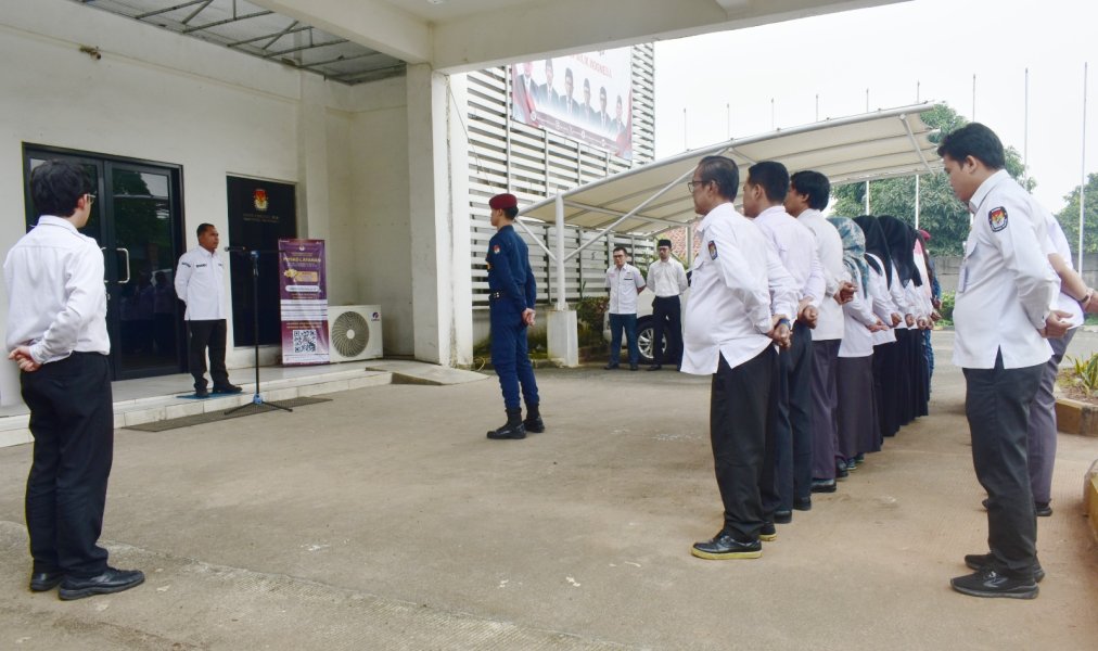 Komisi Pemilihan Umum (KPU) Kabupaten Tangerang melaksanakan apel mingguan pada Senin (25/8/2025) di halaman kantor KPU Kab. Tangerang. Seluruh jajaran mulai dari Ketua, Anggota, Sekretaris, Kasubbag hingga staf sekretariat hadir mengikuti apel dengan penuh khidmat.