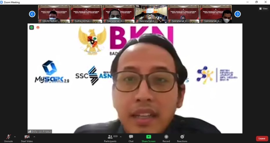 Firdaus selaku Perwakilan dari BKN menjelaskan tujuan diadakannya kegiatan ini, “Tujuan diadakannya acara ini adalah menginformasikan dan mempublikasikan kegiatan pemutakhiran data mandiri ASN serta mendukung tercapainya optimalisasi kualitas data ASN dan Pemutakhiran Data Mandiri kepegawaian yang dilakukan setiap PNS akan membangun sumber data yang langsung berkontribusi mewujudkan Satu Data ASN Nasional dalam prinsip Satu Data Indonesia” pungkasnya.