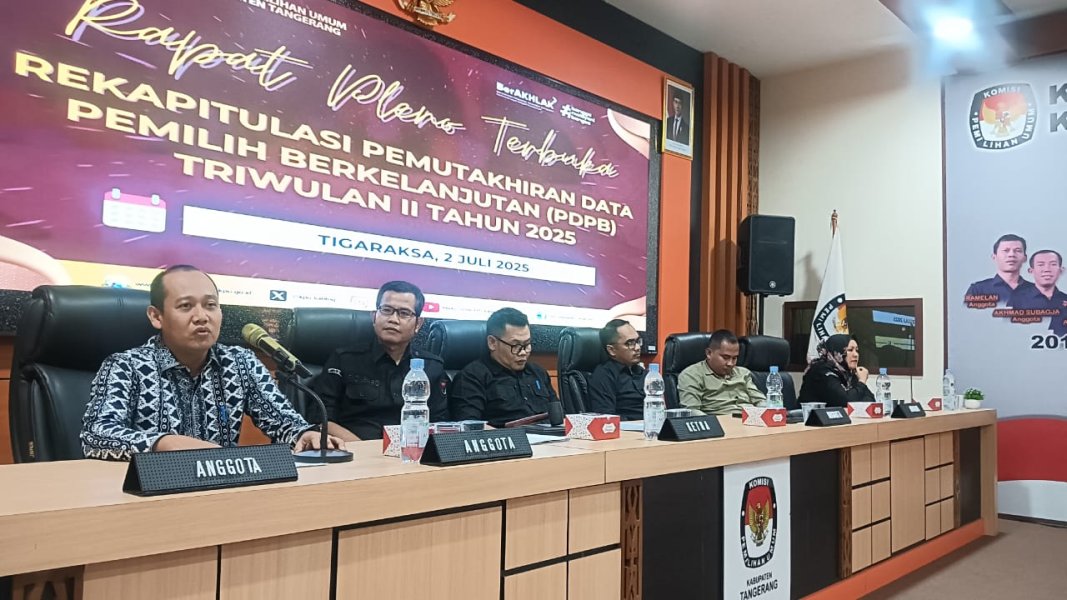 Tigaraksa, (www.kab-tangerang.kpu.go.id) - Komisi Pemilihan Umum (KPU) Kabupaten Tangerang menggelar Rapat Pleno Terbuka Rekapitulasi Daftar Pemilih Berkelanjutan (PDPB) Triwulan II Tahun 2025 di Aula KPU Kabupaten Tangerang, Rabu (2/7/2025).