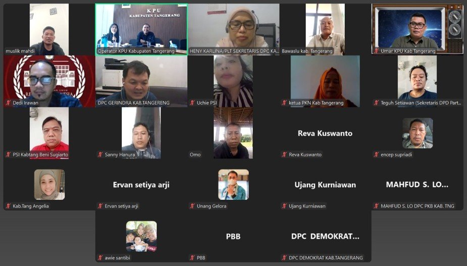 Tigaraksa, (www.kab-tangerang.kpu.go.id) - Memperhatikan dan Menindaklanjuti Surat Ketua Komisi Pemilihan Umum Nomor: 1077/PL.01.2-SD/06/2025 tanggal 18 Juni 2025 Perihal Pemutakhiran Data Partai Politik secara Berkelanjutan melalui Sipol Tahun 2025, Komisi Pemilihan Umum (KPU) Kabupaten Tangerang melaksanakan Rapat Koordinasi melalui Daring pada Zoom. Kamis, 03/07/2025.