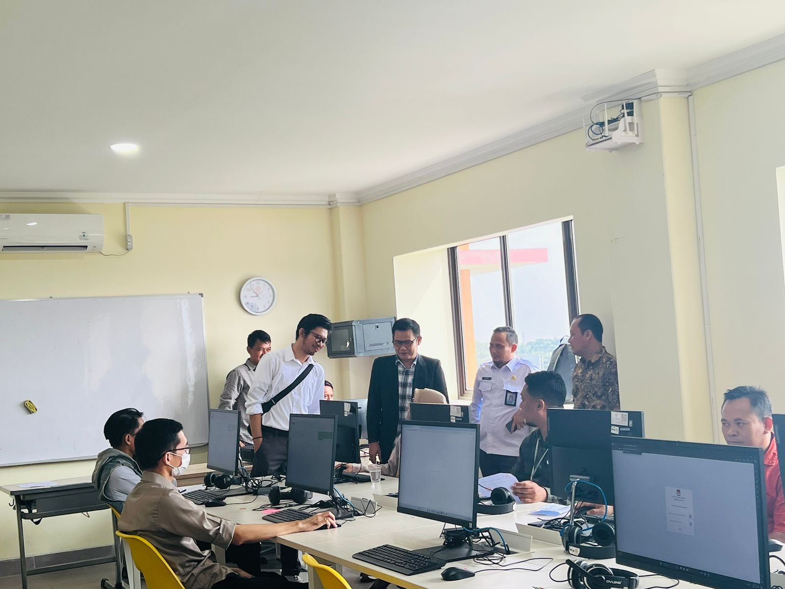 KPU Provinsi Banten Muhamad Ali Zaenal Abidin dan Ketua KPU Kabupaten Tangerang Muhamad Umar memantau kegiatan Proses Tes Tertulis CAT Seleksi Calon Anggota PPK Pilkada 2024.