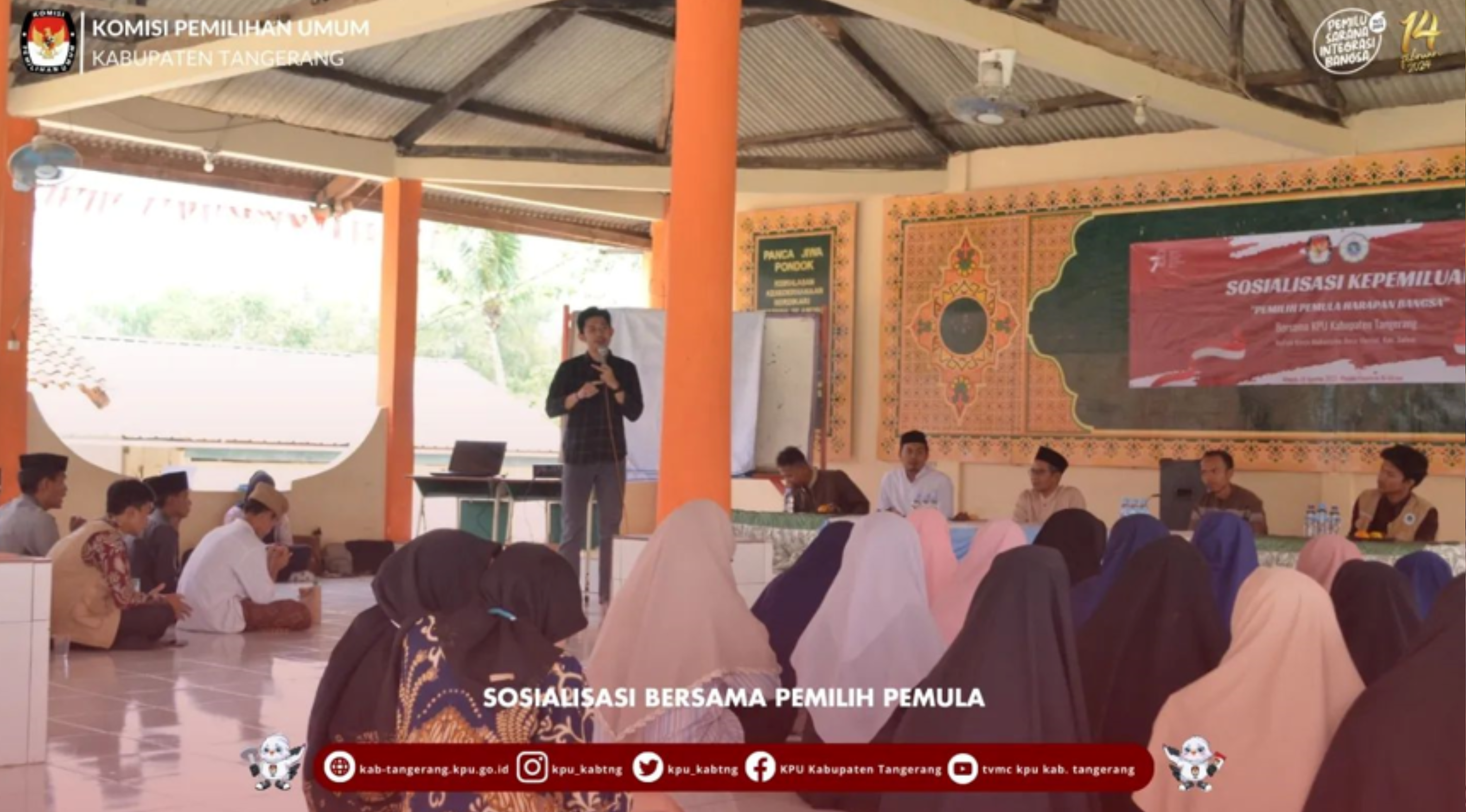 Tigaraksa, (www.kab-tangerang.kpu.go.id) – Anggota KPU Tangerang divisi Sosdiklih, Parmas dan SDM Badri Tamam menjadi narasumber dalam kegiatan Sosialisasi Pemilihan Umum bersama Pemilih Pemula bertempat di Ponpes Al Ma'mur – Solear. Minggu, (20/8/2023).