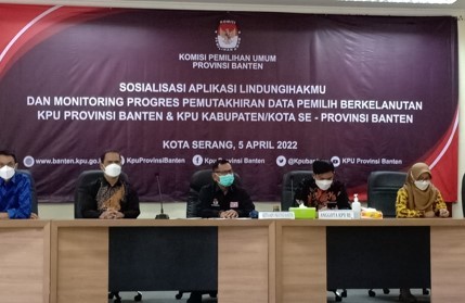 Kota Serang, (www.kab-tangerang.kpu.go.id) - KPU Kabupaten Tangerang menghadiri undangan Sosialisasi Aplikasi Lindungi Hakmu dan Monitoring Progres Pemutakhiran Data Pemilih Berkelanjutan KPU Kabupaten/Kota Se-Provinsi Banten, yang diselenggarakan oleh KPU Provinsi Banten, bertempat di Aula KPU Provinsi Banten Pada Selasa, 05/04/2022.