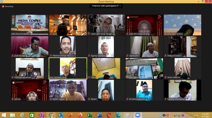 Tigaraksa, (www.kab-tangerang.kpu.go.id) - KPU Kabupaten Tangerang pada senin (17/05/2021) mengikuti Rapat Koordinasi dan Sosialisasi Program Desa Peduli Pemilu dan Pemilihan via zoom meeting yang diselenggarakan oleh KPU Provinsi Banten.
