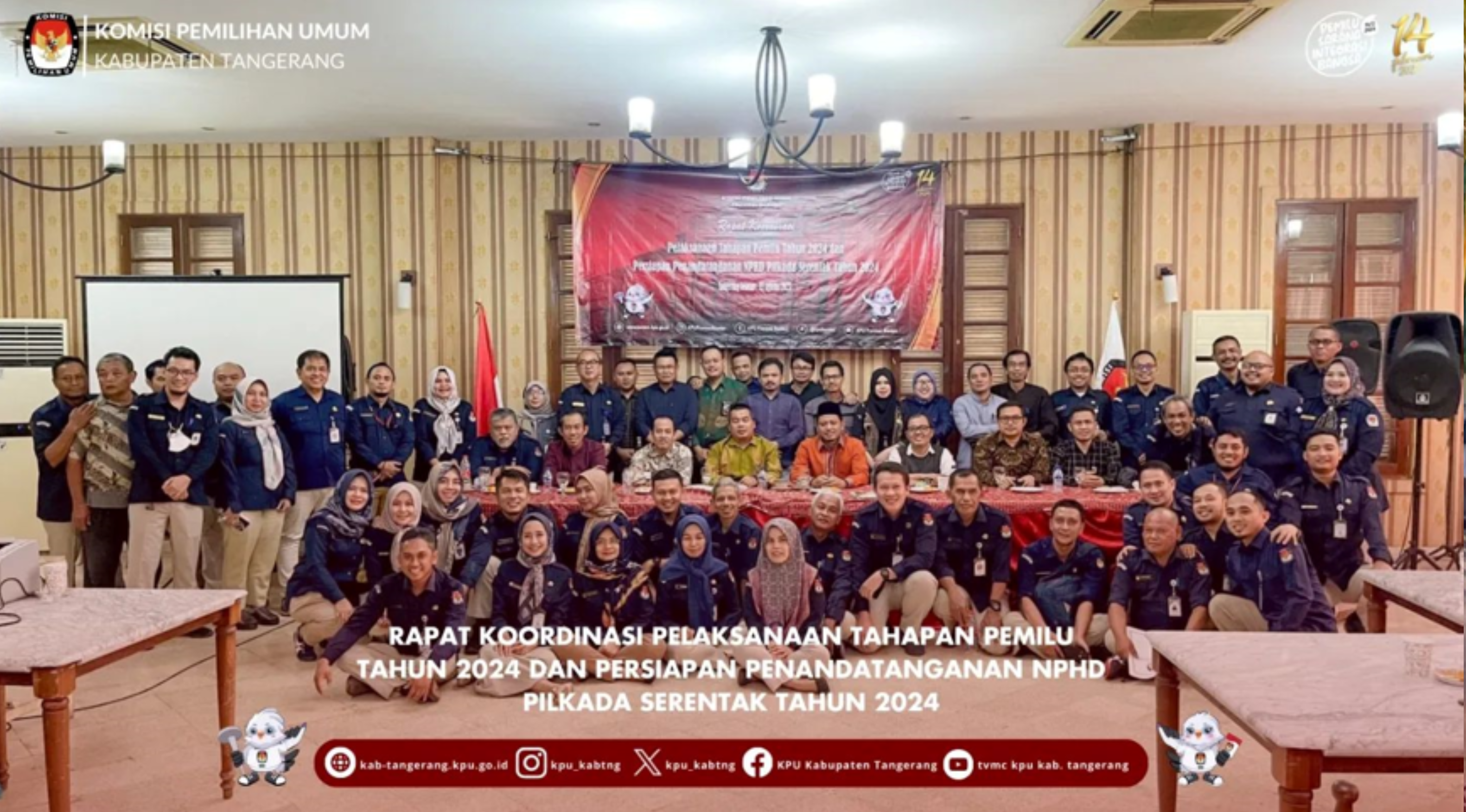 KPU Kabupaten Tangerang Mengikuti Rapat Koordinasi Pelaksanaan Tahapan Pemilu Tahun 2024 dan Persiapan Penandatanganan NPHD Pilkada Serentak Tahun 2024
