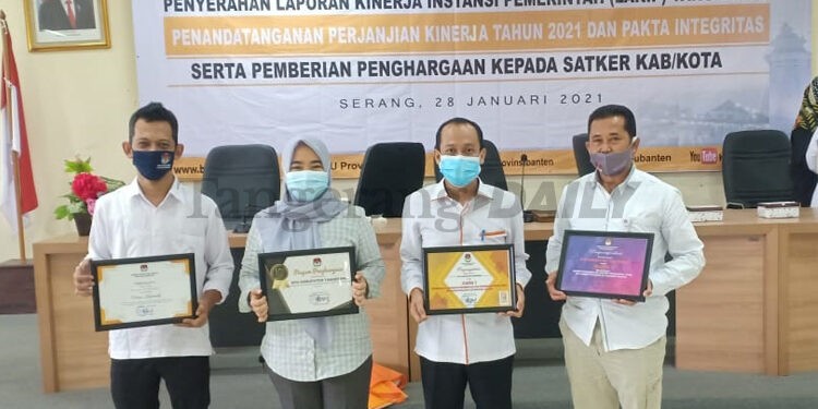Empat penghargaan tersebut diserahkan bertepatan dengan penyerahan Laporan Kinerja Instansi Pemerintah (LAKIP) tahun 2020 serta penandatangan perjanjian kinerja tahun 2021 dan fakta integritas yang berlangsung di Kantor KPU Banten, di Kota Serang, Banten.