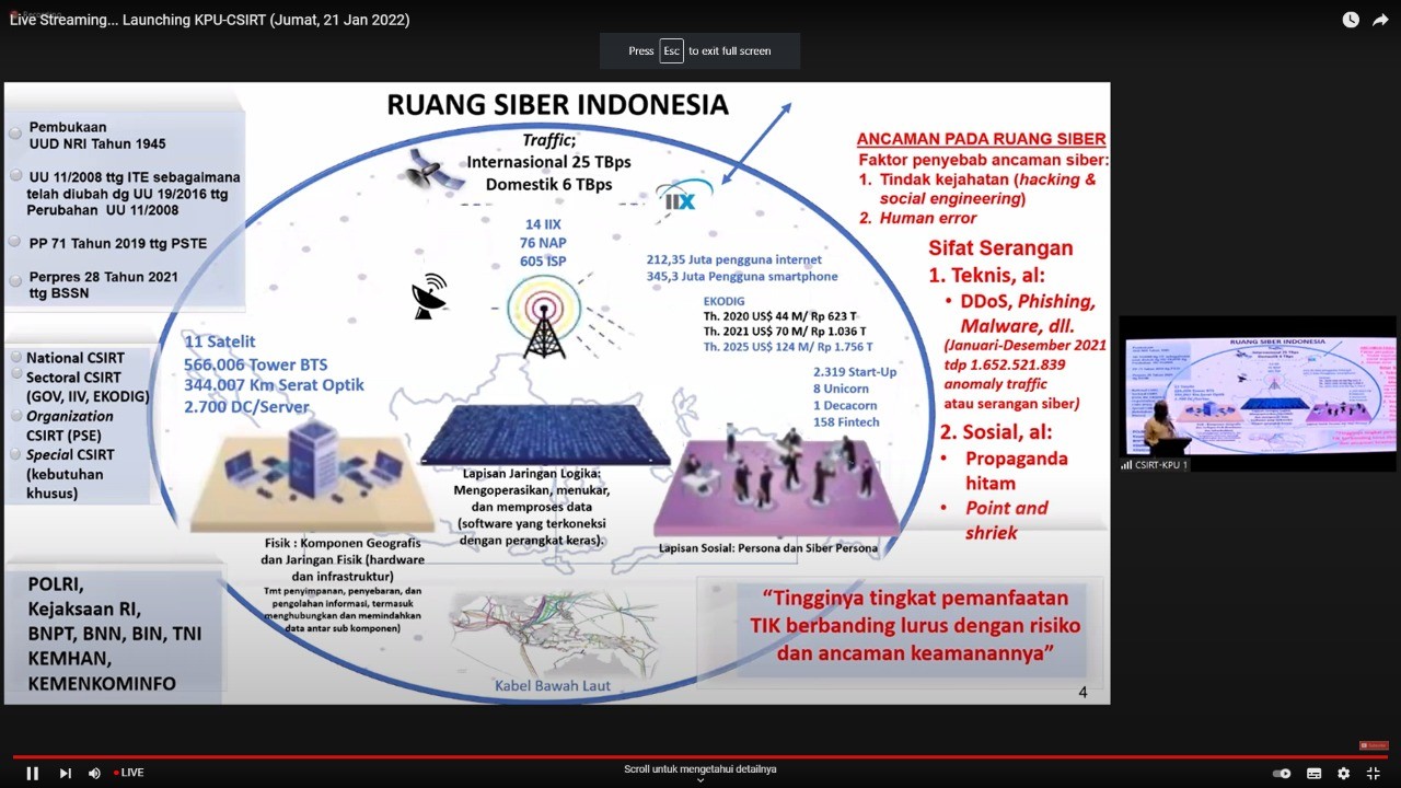 Jakarta, (www.kab-tangerang.kpu.go.id) - Komisi Pemilihan Umum (KPU) Kabupaten Tangerang mengikuti kegitan Peluncuran KPU Computer Security Incident Response Team (KPU-CSIRT), secara daring dengan media youtube pada Jumat (21/1/2022).