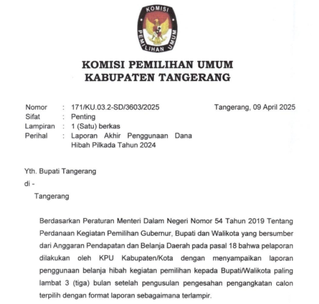 Laporan Penggunaan Belanja Hibah Pilkada Serentak Tahun 2024