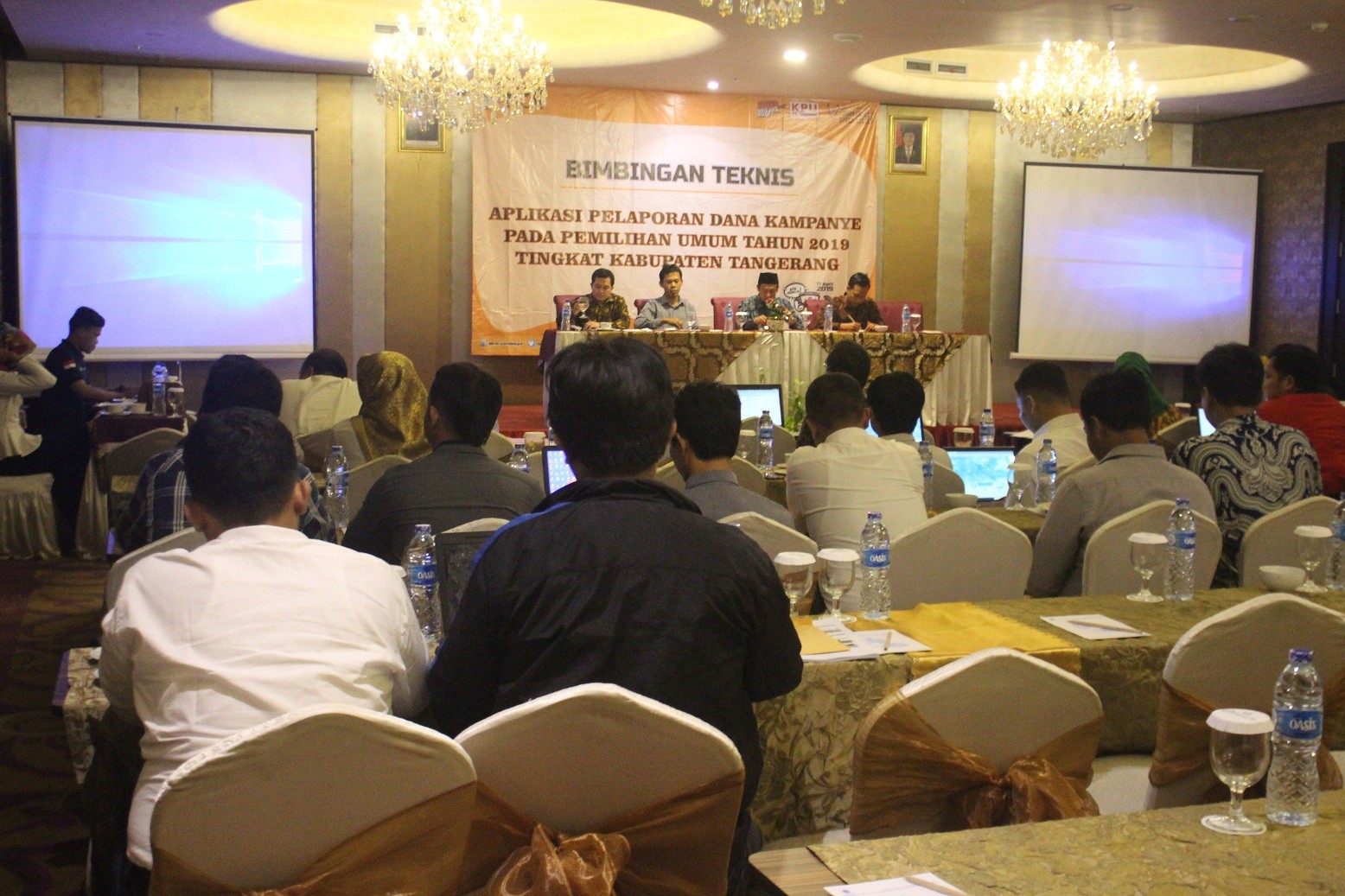 Komisi Pemilihan Umum (KPU) Kabupaten Tangerang menggelar Bimbingan Teknis (Bimtek) aplikasi pelaporan dana kampanye peserta Pemiliham Umum (Pemilu) 2019.