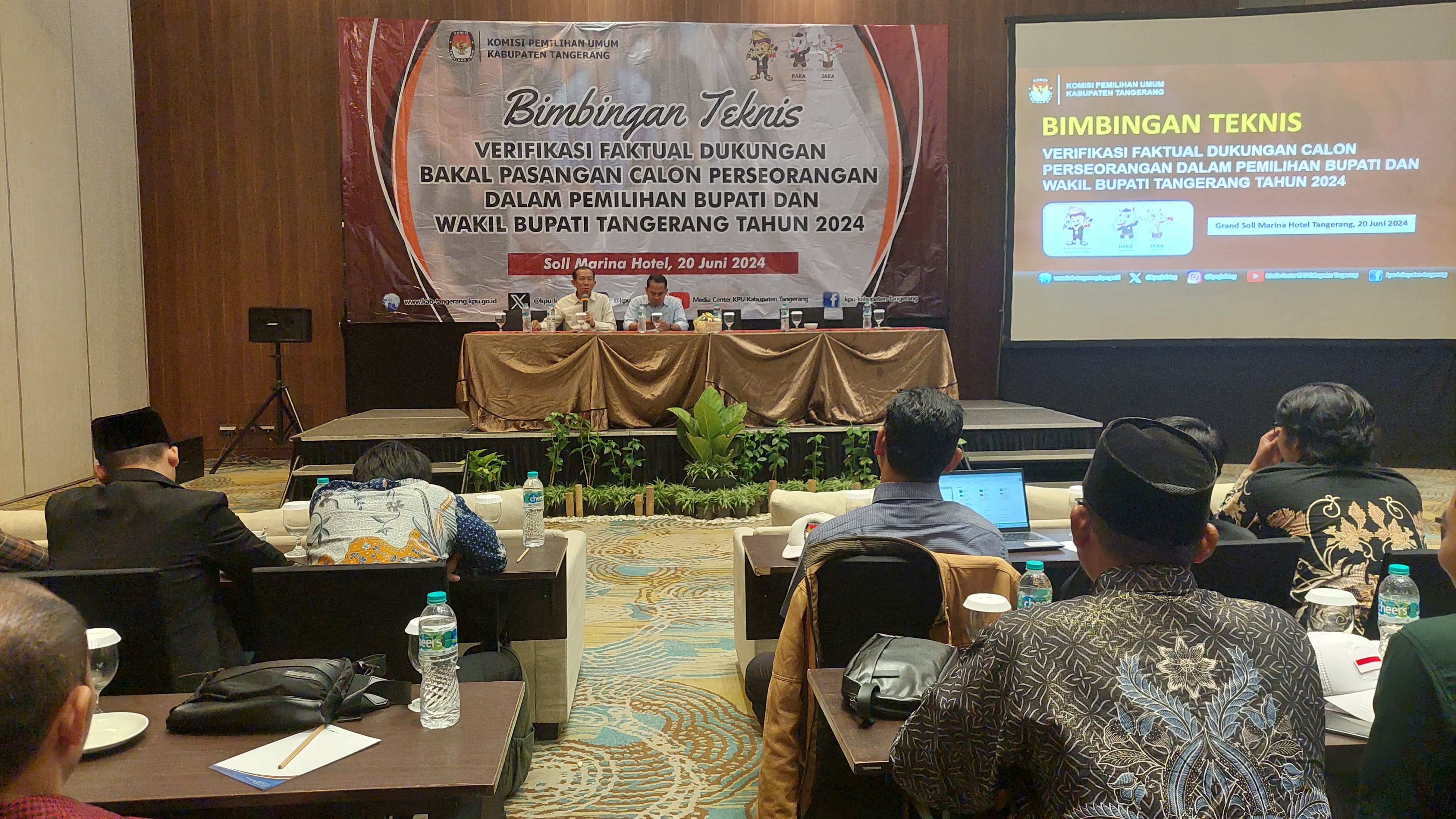 Kota Tangerang, (www.kab-tangerang.kpu.go.id) – Komisi Pemilihan Umum (KPU) Kabupaten Tangerang, Banten melakukan Bimbingan Teknis Verifikasi Faktual Dukungan Bakal Pasangan Calon Perseorangan dalam Pemilihan Bupati dan Wakil Bupati Tangerang Tahun 2024. Soll Marina Tangerang, Kamis, (20/06/2024).