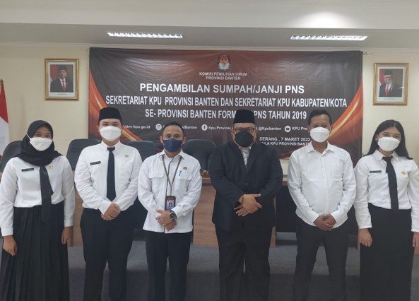Acara ini berdasarkan pada Surat Edaran Sekretariat Jenderal KPU RI Nomor: 363/SDM.11-SD/04/2022 tanggal 22 Februari 2022 Perihal Pengambilan Sumpah/Janji PNS Sekretariat KPU Provinsi dan Sekretariat KPU Kabupaten/Kota Formasi Tahun 2019, sebanyak 21 CPNS yang telah ditempatkan di Sekretariat KPU Provinsi Banten dan di 8 Sekretariat KPU Kabupaten/kota, untuk diambil sumpah janji PNS.
