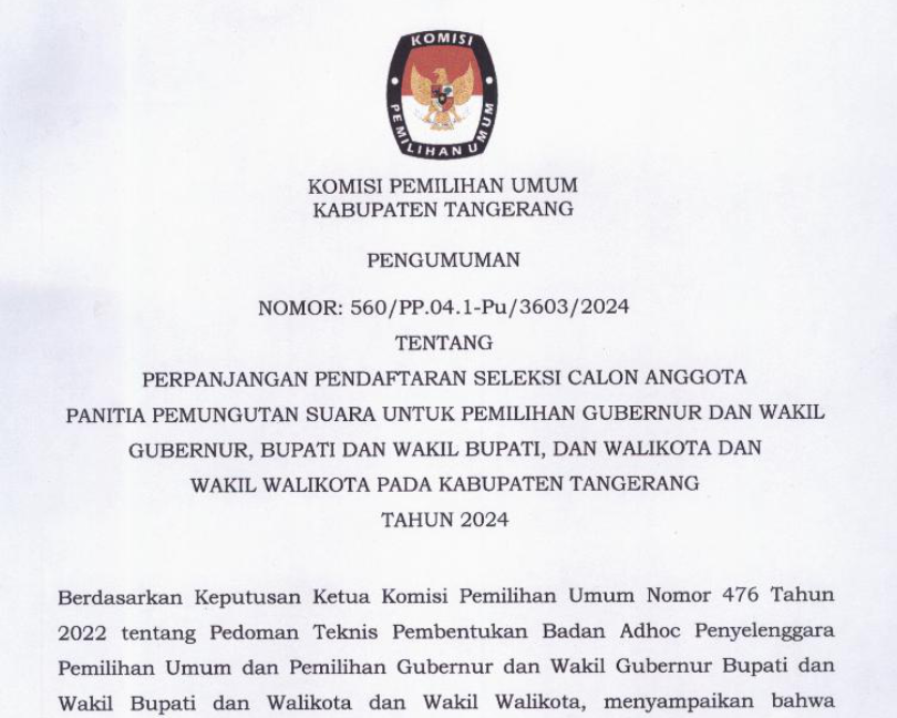 Pengumuman Perpanjangan Pendaftaran Calon Anggota PPS Pilkada 2024