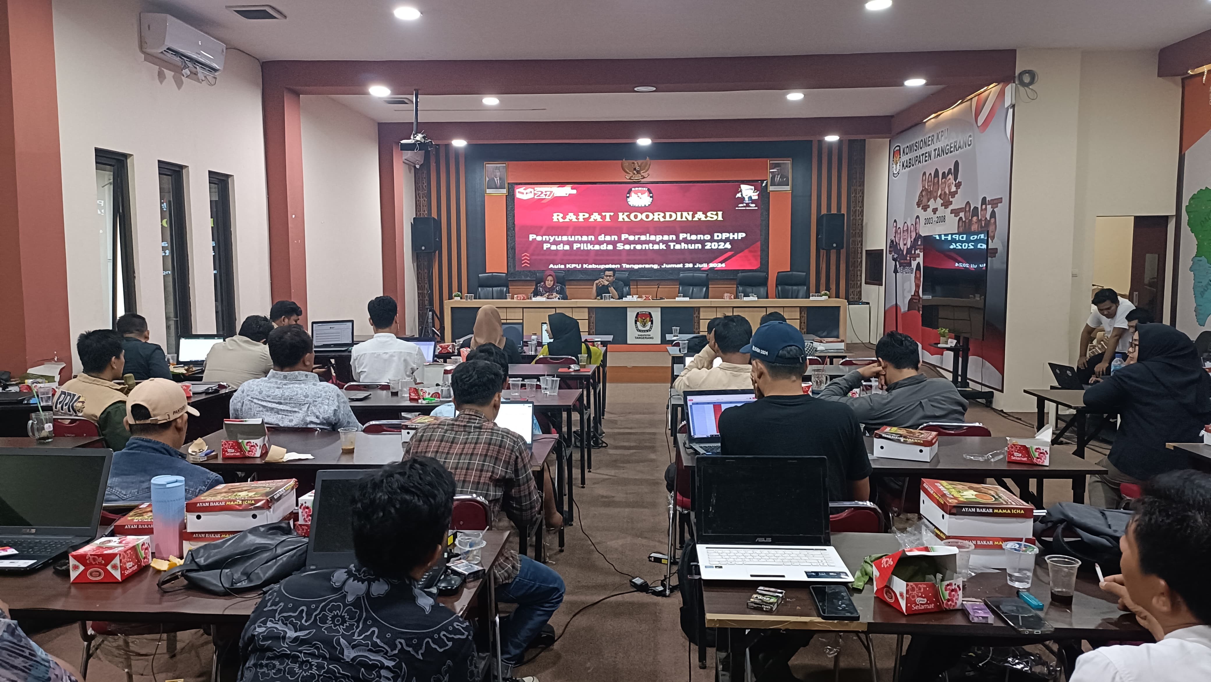 Tigaraksa, (www.kab-tangerang.kpu.go.id) – Komisi Pemilihan Umum (KPU) Kabupaten Tangerang melaksanakan Rapat Koordinasi Penyusunan dan Persiapan Pleno DPHP pada Pilkada Serentak Tahun 2024 Jum’at, 26/07/2024.