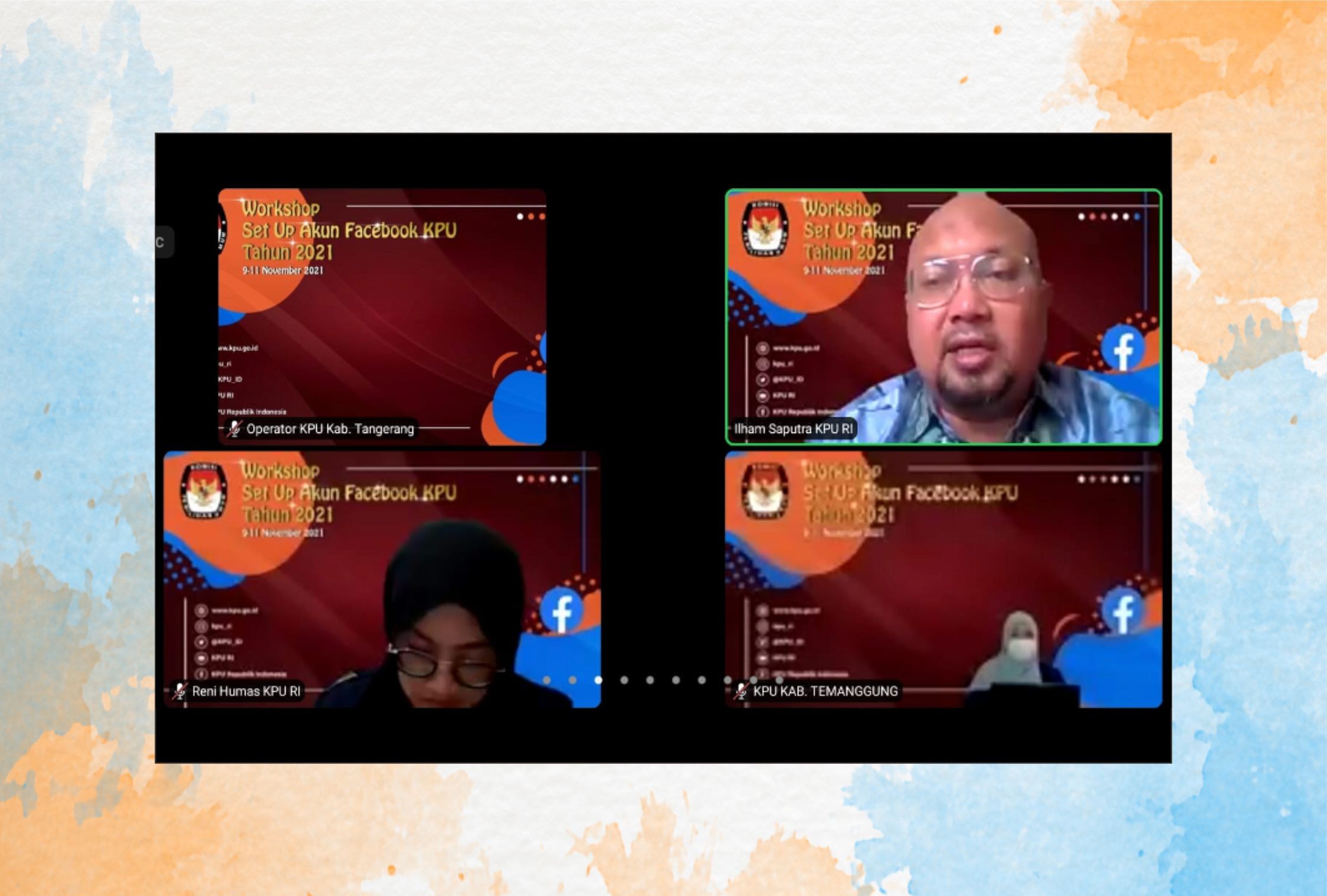 Tigaraksa, (www.kab-tangerang.kpu.go.id) - KPU Kabupaten Tangerang mengikuti Workshop Set Up Facebook Lembaga Pemerintahan Gelombang I Tahun 2021 yang diselenggarakan oleh KPU Republik Indonesia secara daring melalui kanal zoom meeting yang diikut oleh Admin /Operator Media Sosial KPU Provinsi dan KPU Kabupaten/Kota Seluruh Indonesia dalam rangka upaya Peningkatan Kapasitas SDM dan Kapasiitas Pengelolaan Akun Media Sosial serta koordinasi akun fanpage Facebook KPU Provinsi dan KPU Kabupaten/Kota Seluruh Indonesia.