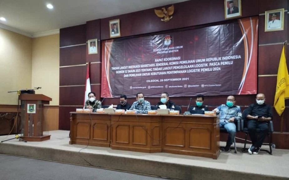 Cilegon, (www.kab-tangerang.kpu.go.id) - Bertempat di di Ruang Rapat Setda Kota Cilegon, KPU Kabupaten Tangerang menghadiri kegiatan Rapat Koordinasi Tindak Lanjut Instruksi Sekretaris Jenderal Komisi Pemilihan Umum Republik Indonesia Nomor 12 Tahun 2021 Tentang Tindak Lanjut Pengelolaan Logistik Pasca Pemilu dan Pemilihan Untuk Kebutuhan Penyimpanan Logistik Pemilu 2024 pada Rabu (29/9/2021).