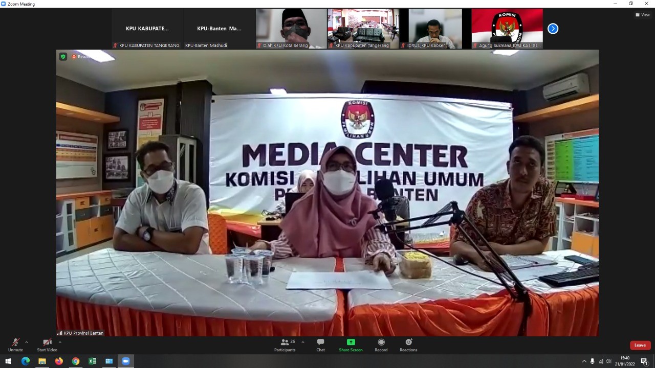 Tigaraksa, (www.kab-tangerang.kpu.go.id) - Komisi Pemilihan Umum (KPU) Kabupaten Tangerang menghadiri Kegiatan Rakor Rekapitulasi Data Dapil untuk Persiapan Tahapan pada Pemilu Tahun 2024 secara daring dengan menggunakan aplikasi Zoom Meeting di Kota Serang, 21/01/2022.