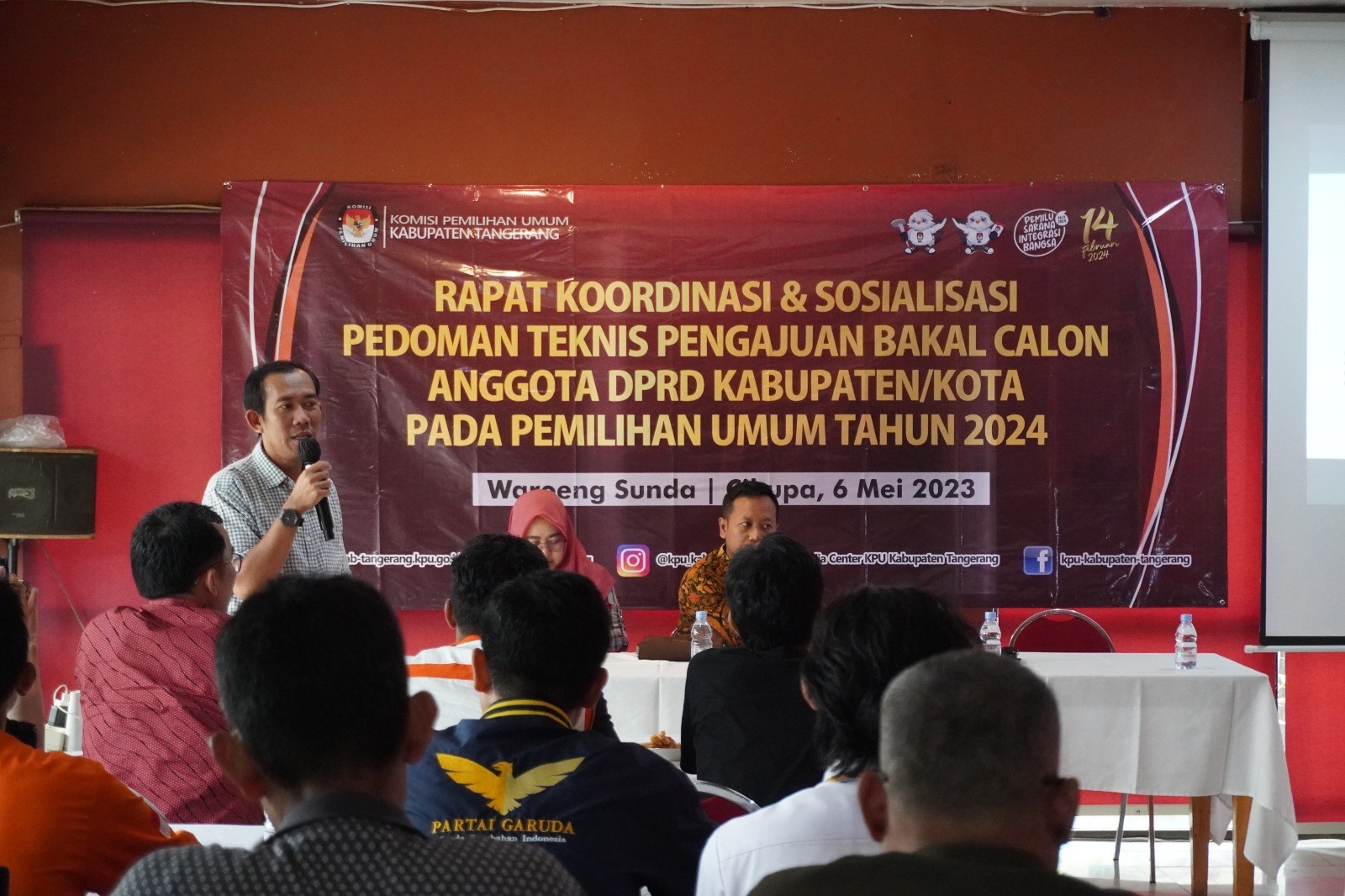 Tigaraksa, (www.kab-tangerang.kpu.go.id) – KPU Kabupaten Tangerang melaksanakan Rapat Koordinasi dan Sosialisasi Pedoman Teknis Pengajuan Bakal Calon Anggota DPRD Kabupaten/Kota pada Pemilu Tahun 2024 bertempat di Waroeng Sunda, Tangerang. Sabtu, (06/05/2023).