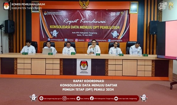 Tigaraksa, (www.kab-tangerang.kpu.go.id) – KPU Kabupaten Tangerang melaksanakan kegiatan Rapat Koordinasi (Rakor) Konsolidasi Data menuju Daftar Pemilih Tetap (DPT) Pemilu 2024, bertempat di Aula KPU Kabupaten Tangerang. Senin, (19/06/2023).