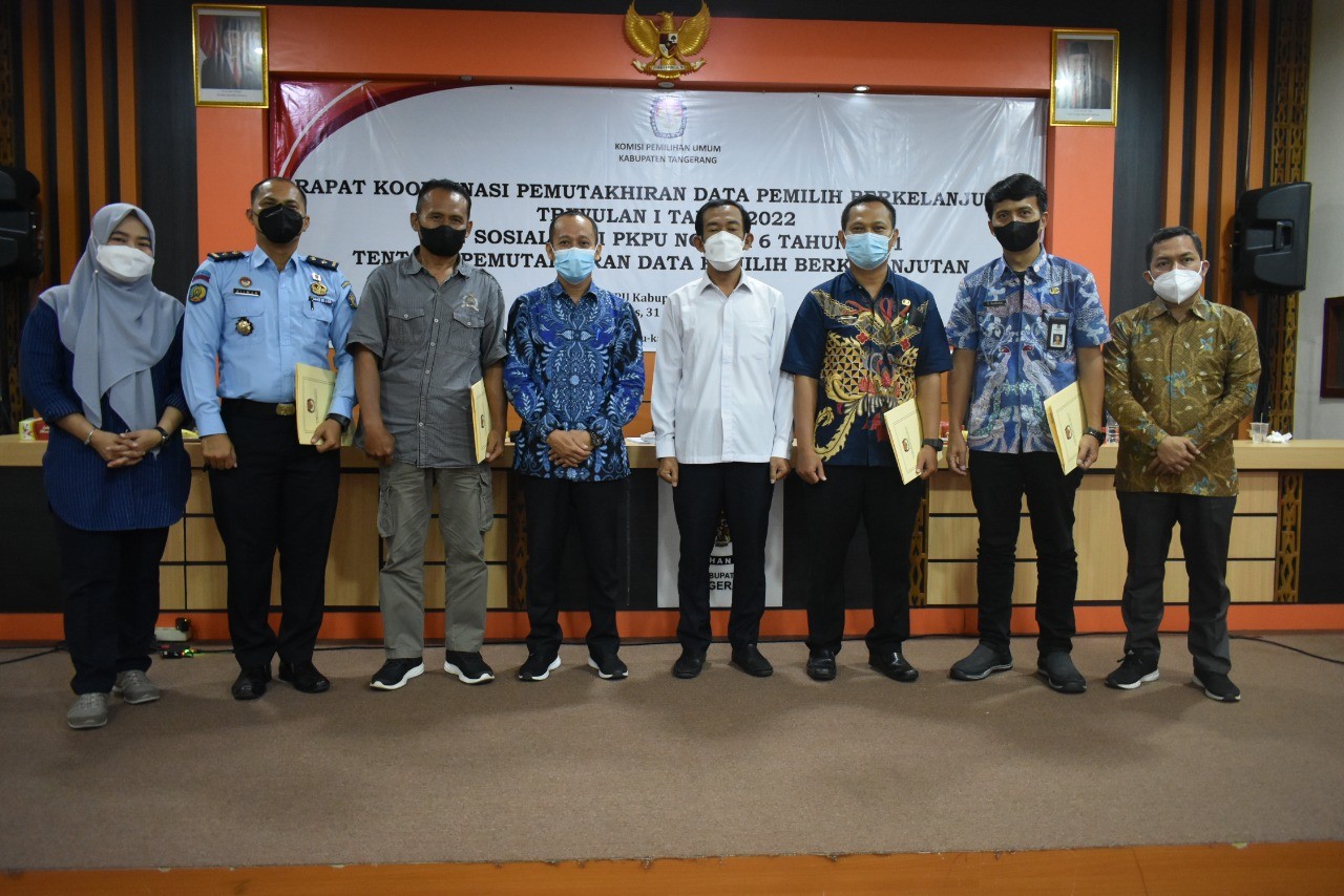 Tigaraksa, (www.kab-tangerang.kpu.go.id) - Komisi Pemilihan Umum (KPU) Kabupaten Tangerang melakukan kegiatan Rapat Koordinasi Pemutakhiran Data Pemilih Berkelanjutan (PDPB) Triwulan I Tahun 2022 dan Sosialisasi PKPU 6 Tahun 2021 tentang Pemutakhiran Data Pemilih Berkelanjutan,) pada Kamis (31/03/2022).