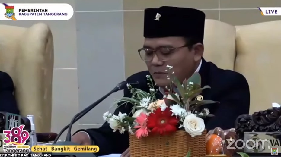 Bupati Tangerang yaitu Ahmed Zaki Iskandar dalam kesempatannya juga menyampaikan sambutannya, “Puji syukur pada hari ini kita dapat menghadiri kegiatan Rapat paripurna DPRD Kabupaten Tangerang dalam rangka HUT Kabupaten Tangerang ke-389 tahun 2021. Ini adalah momentum yang berbeda bagi kita semua, di tahun ini juga kita diharuskan untuk saling bersinergi, bersatu, dan bergotong – royong untuk bangkit dari pandemi Covid-19 yang sampai saat ini masih ada” ujarnya.