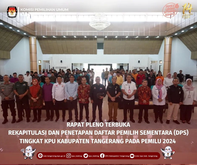 Rapat Pleno Terbuka Rekapitulasi dan Penetapan Daftar Pemilih Sementara (DPS) Tingkat KPU Kabupaten Tangerang pada Pemilu 2024