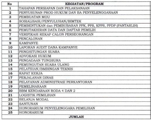 Rekap Anggaran Biaya Pemilihan Bupati dan Wakil Bupati Tangerang Tahun 2024