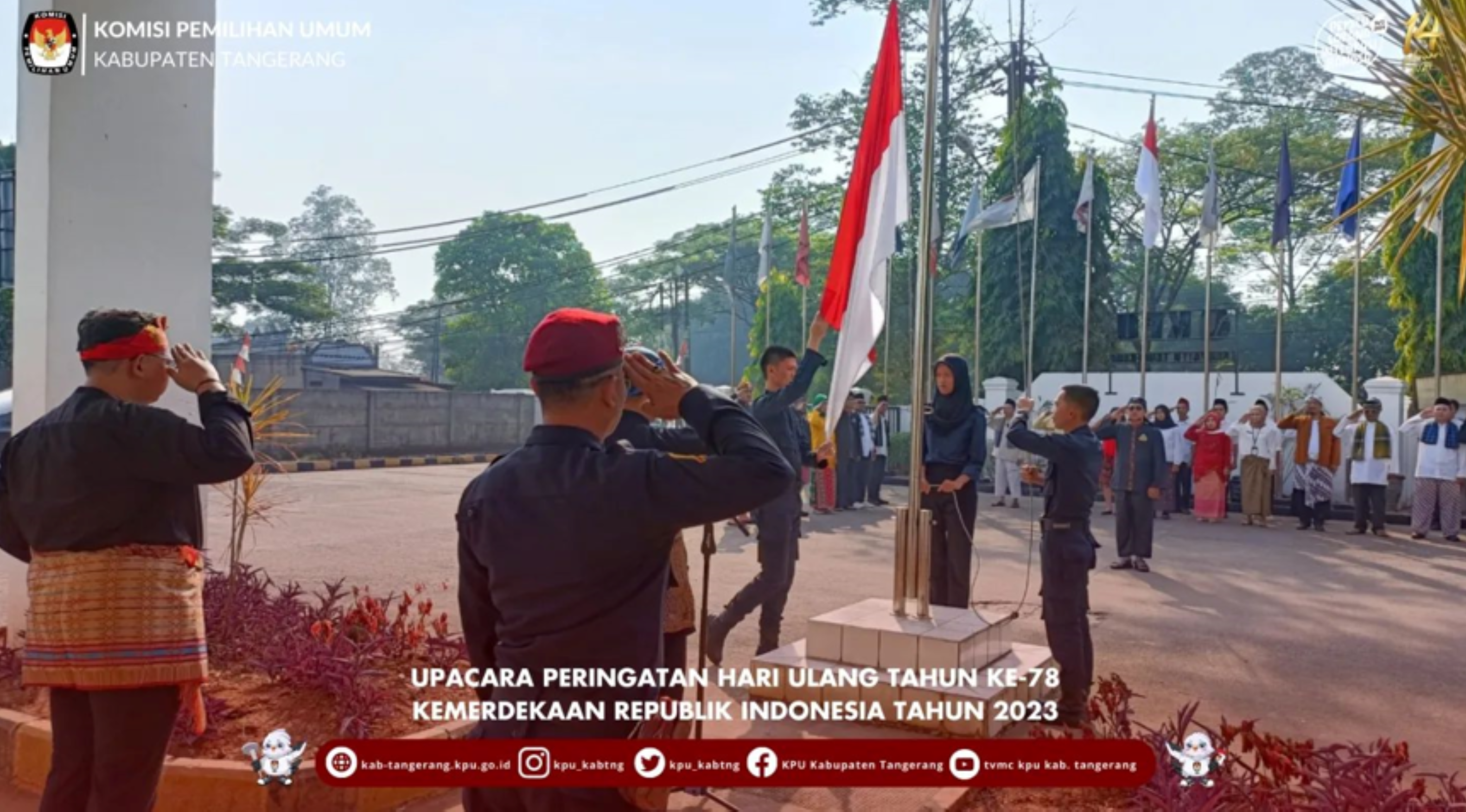 Bertugas sebagai inspektur upacara yaitu ketua KPU Tangerang Muhamad Umar dan komandan upacara yaitu Kasubag Teknis Penyelenggara Pemilu, Partisipasi dan Hupmas Didi Munadi.