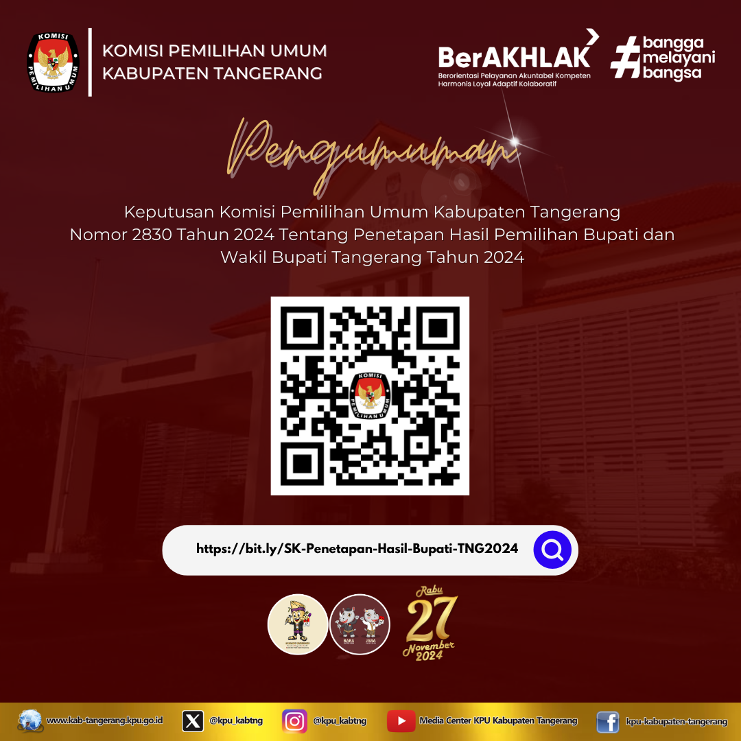 SK Penetapan Hasil Pemilihan Bupati dan Wakil Bupati Tangerang Tahun 2024