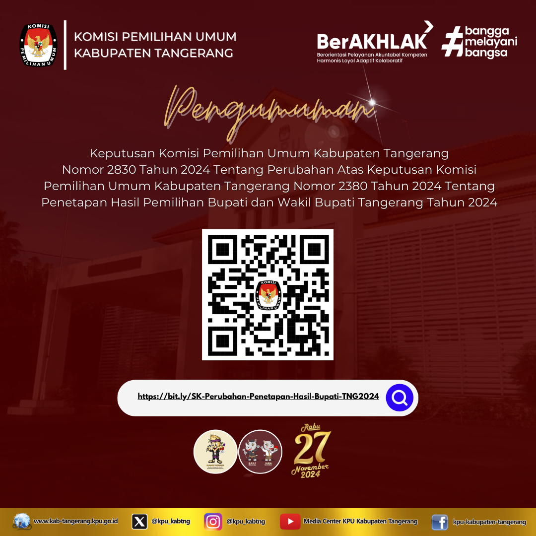 SK Perubahan Penetapan Hasil Pemilihan Bupati dan Wakil Bupati Tangerang Tahun 2024