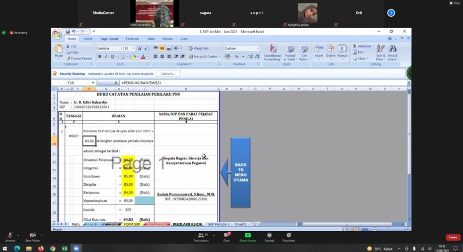 Tigaraksa, (www.kab-tangerang.kpu.go.id) - KPU Kabupaten Tangerang menghadiri undangan Sosialisasi Sasaran Kinerja Pegawai (SKP), Pengisian Data Mandiri mySAPK (PDM mySAPK) dan absensi virtual yang diselenggarakan oleh KPU Provinsi Banten via zoom meeting pada hari Kamis (12/8/2021).