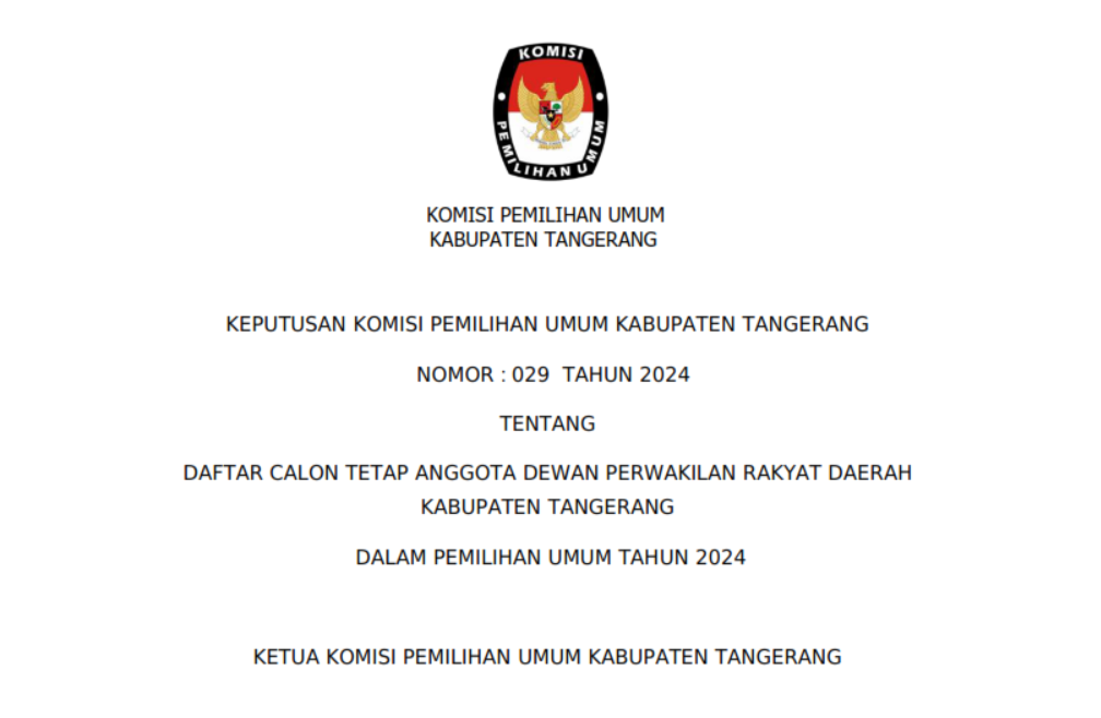 Surat Keputusan Perubahan DCT Anggota DPRD Pada Pemilu Tahun 2024