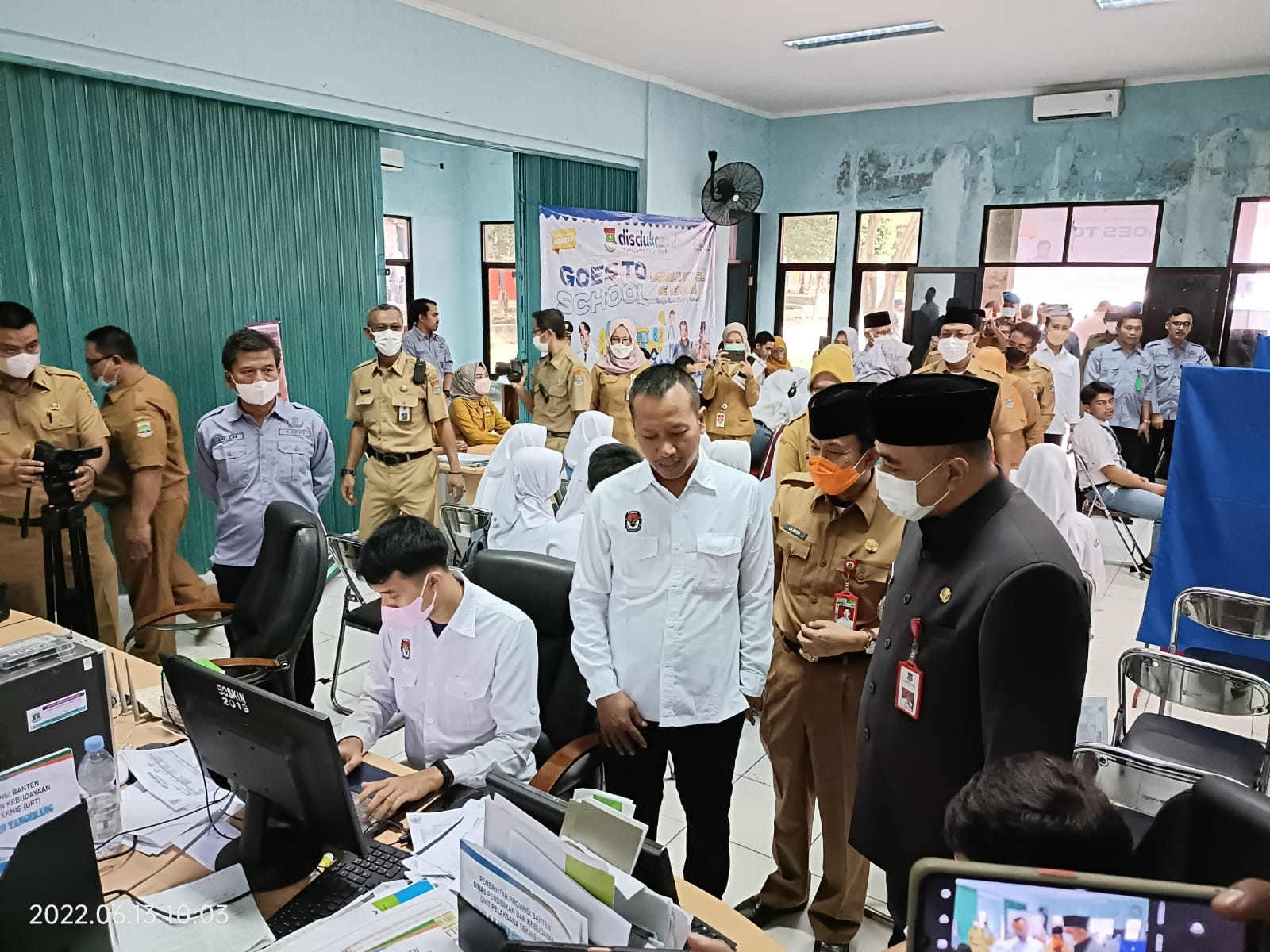 Tigaraksa, (www.kab-tangerang.kpu.go.id) - Dinas Kependudukan dan Catatan Sipil (Disdukcapil) Kabupaten Tangerang menggelar acara Launching Disdukcapil Goes To School" Menyelenggarakan Pelayanan KTP Elektronik ke Sekolah di SMAN 6 Kabupaten Tangerang. Senin, (13/06/2022).
