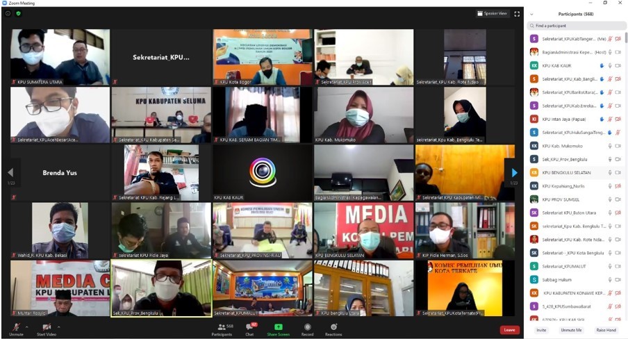 Hadir dalam undangan zoom meeting tersebut yaitu Sekretaris KPU Kabupaten Tangerang, Kasubbag Hukum, serta Staff Pelaksana dan seluruh KPU Provinsi dan KPU Kabupaten/Kota serta KPU RI Sub Bagian Administrasi Kepegawaian.