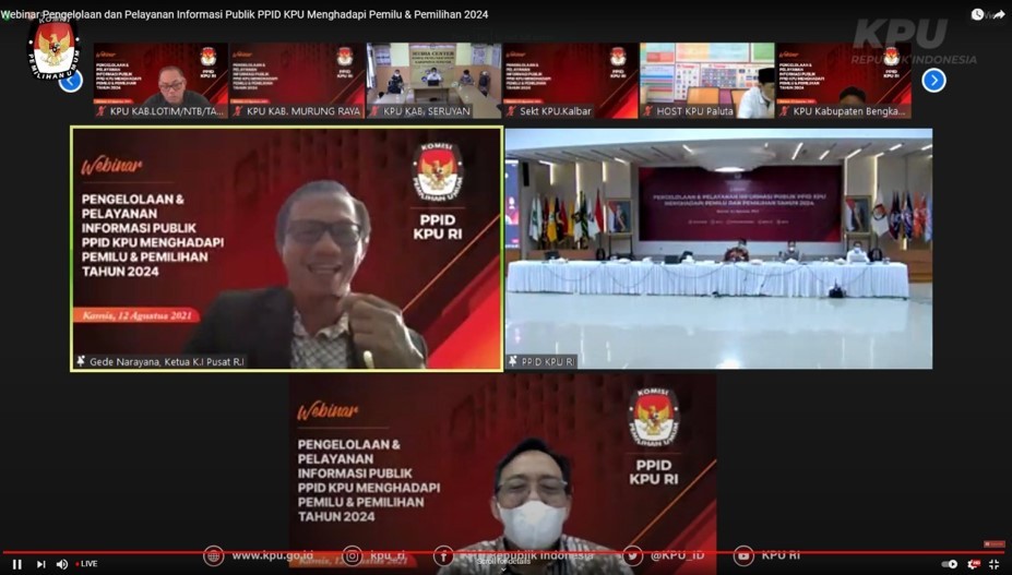 Tigaraksa, (www.kab-tangerang.kpu.go.id) - KPU RI menggelar Webinar mengenai Pengelolaan dan Pelayanan Informasi PPID KPU dalam Menghadapi Pemilu dan Pemilihan 2024 yang dilakukan secara daring. Hal ini dilakukan untuk mewujudkan penyelenggaraan pemilu secara transparan dan menjadikan aspek penting dalam memberikan legitimasi pada pemilu Kamis (12/8/2021) .