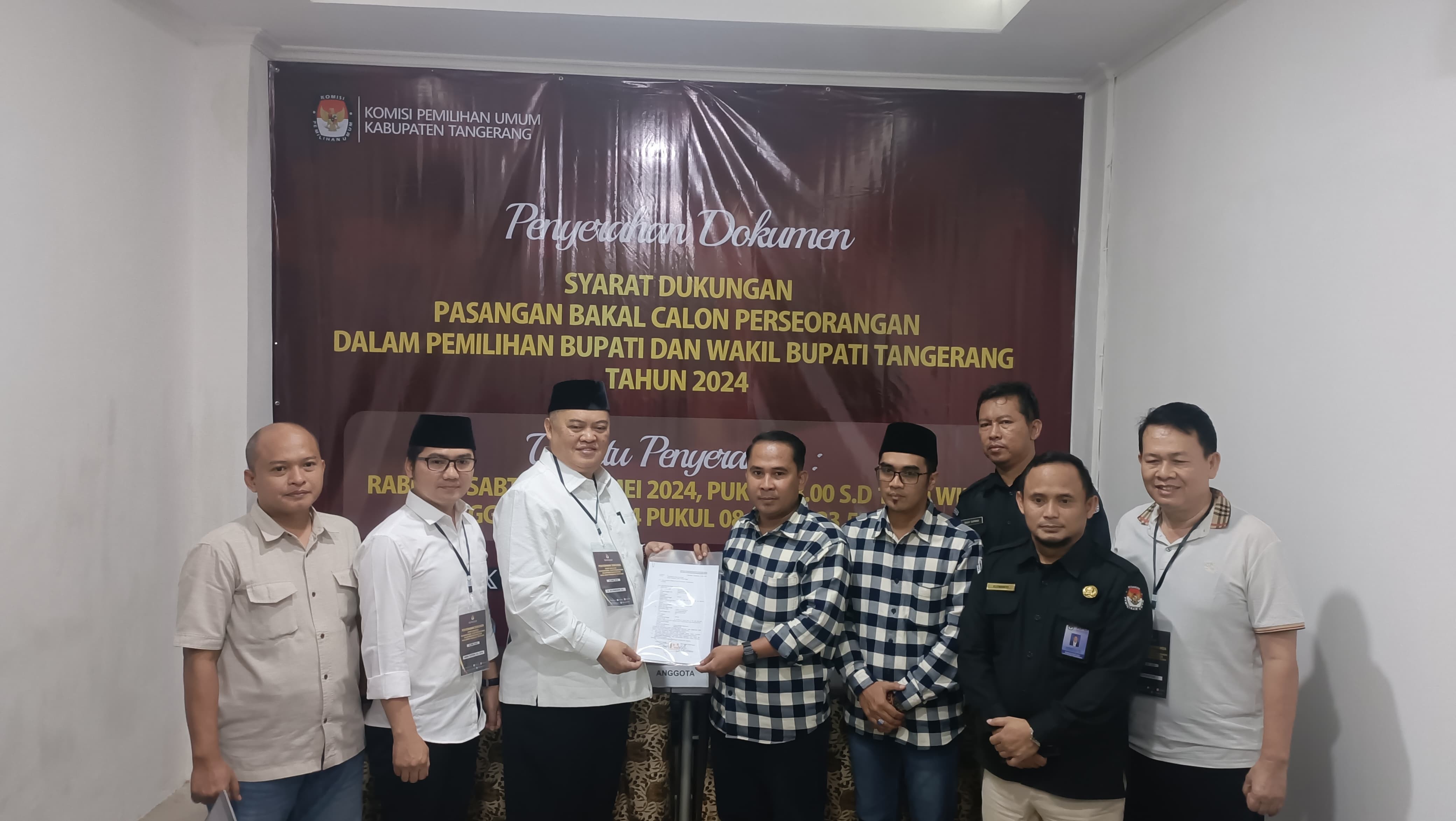 Dimana sebanyak 158.733 atau 104,45 persen dukungan telah diserahkan ke KPU Kabupaten Tangerang, dengan ketentuan 6.5 persen atau 152.999 dukungan dari jumlah Daftar Pemilih Tetap (DPT) Kabupaten Tangerang pada Pemilu 2024 yang tersebar di 15 Kecamatan.